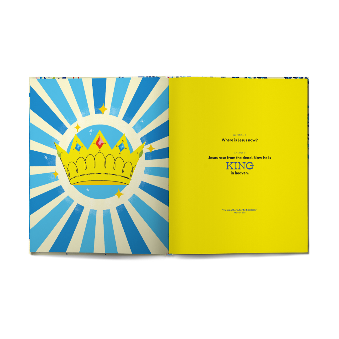 a colorful book with Bible doctrine questions for each lesson
